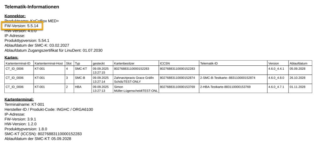 Unter LinuDent > System > Telematik-Informationen finden Sie Angaben zur Firmware-Version.
